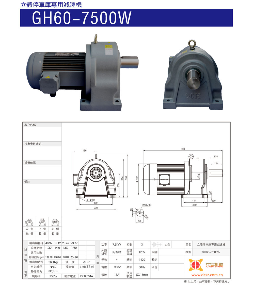 GH60-5500W/7500W立體車庫專用減速機